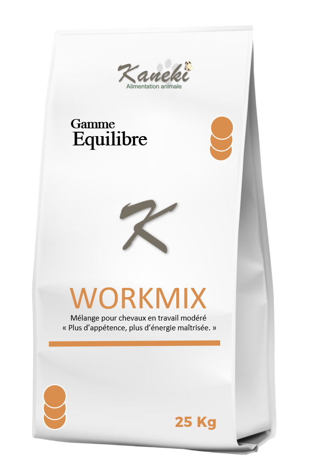 Équilibre WORKMIX combine énergie maîtrisée, digestibilité et appétence. Idéal pour les chevaux actifs préférant les mélanges variés et attractifs.